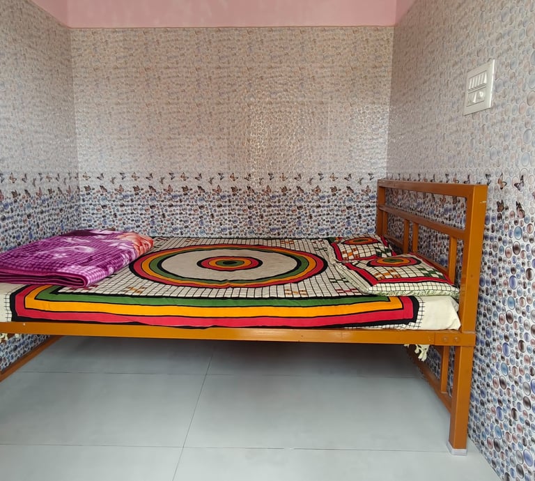 Our single cot rooms feature a spacious king-sized bed and are thoughtfully designed to provide a relaxing and comfortable stay. Each room includes an attached private washroom equipped with a modern western-style toilet and essential amenities. Ideal for couples, families, or small groups, these rooms can comfortably accommodate 2–3 adults, making them perfect for both short and extended stays.